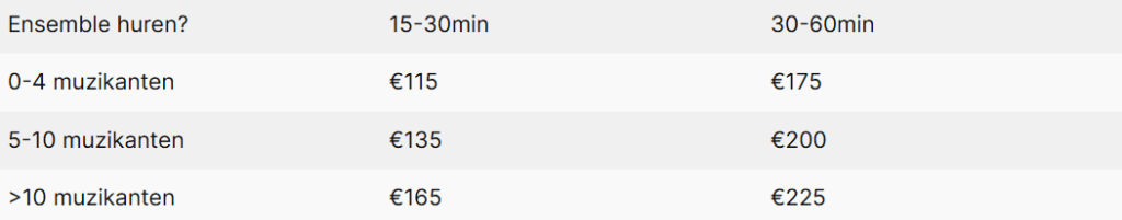 Wilt u genieten van uw evenement onder het genot van goede muziek? Dan is het ensemble van De Ontzetting misschien iets voor u! De zogenaamde EnsembleCie is een groep musici uit De Ontzetting die het leuk vinden om in kleinere groepen concerten te geven. Al uw wensen zoals specifieke partituren, genres of kledingstijl zijn bespreekbaar. Zo kan de EnsembleCie uw evenement een extra laag entertainment geven. Doordat de EnsembleCie over een divers scala aan muziekinstrumenten beschikt, zijn ze in te huren voor meerdere gelegenheden zoals bruiloften, (verjaardags)feesten, feestdagen zoals Koningsdag etc. Ook met kerst hebben wij een mooi repertoire voor de gezellige kerstsferen.